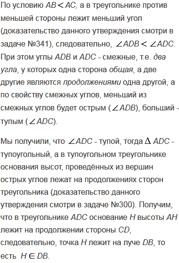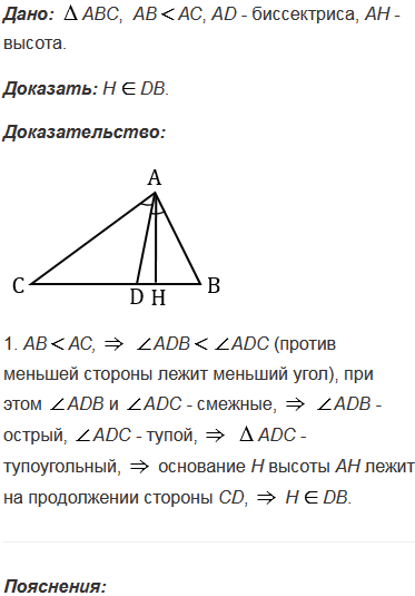 АС, отрезок АD - биссектриса, отрезок АН - высота. Докажите, что точка Н лежит на луче DВ.