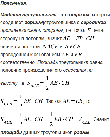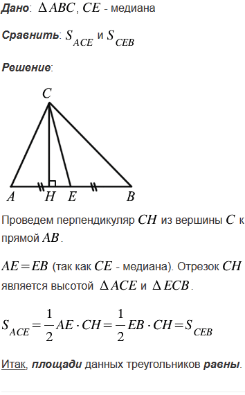 Сравните площади двух треугольников, на которые разделяется данный треугольник его медианой.