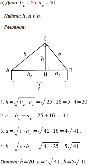 В данной задаче использованы следующие обозначения для прямоугольного треугольника АВС с прямым углом С и высотой СН: ВС =
