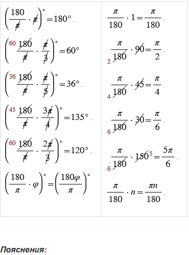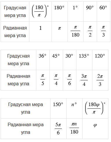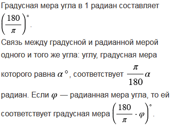 Вспомните, связь радианной и градусной меры угла.